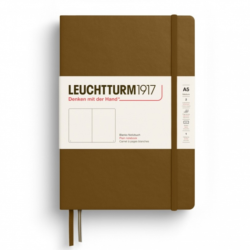 Caiet A5, 125file, velin, coperta carton rigid, maro scortisoara, LEUCHTTURM LT372196