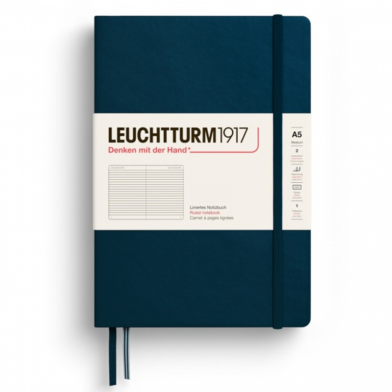 Caiet A5, 125file, velin, coperta carton rigid, albastru navy, LEUCHTTURM LT342924