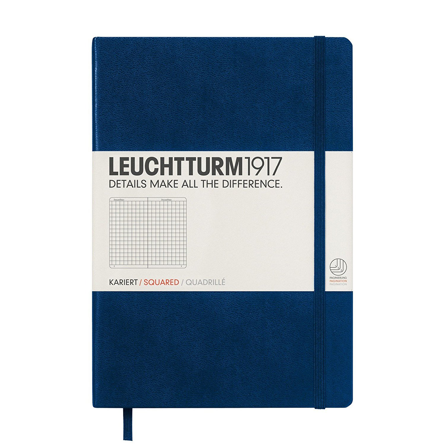 Caiet A5, 125file, matematica, coperta carton rigid, albastru navy, LEUCHTTURM LT342923