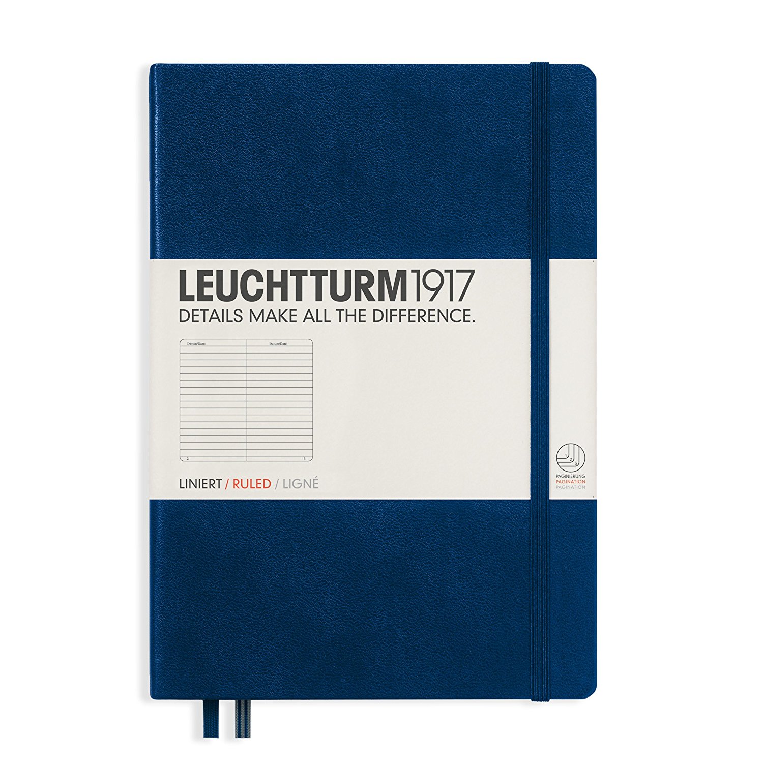 Caiet A5, 125file, dictando, coperta carton rigid, albastru navy, LEUCHTTURM LT342922