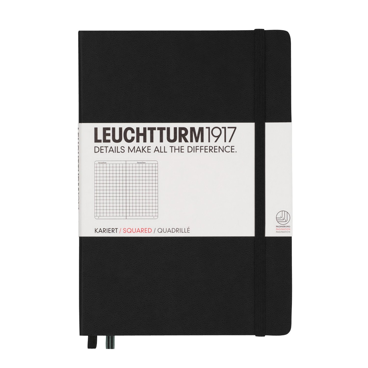 Caiet A5, 125file, matematica, coperta carton rigid, negru, LEUCHTTURM LT315928