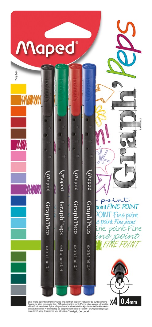 Liner 4 culori/blister, varf 0,4mm, Graph'Peps Maped