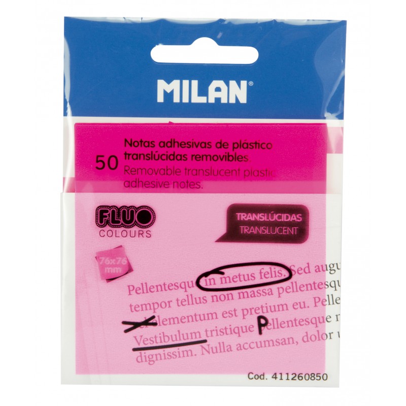 Notes autoadeziv 76mm x 76mm, 50 file/buc, plastic, roz neon, Milan 411260850