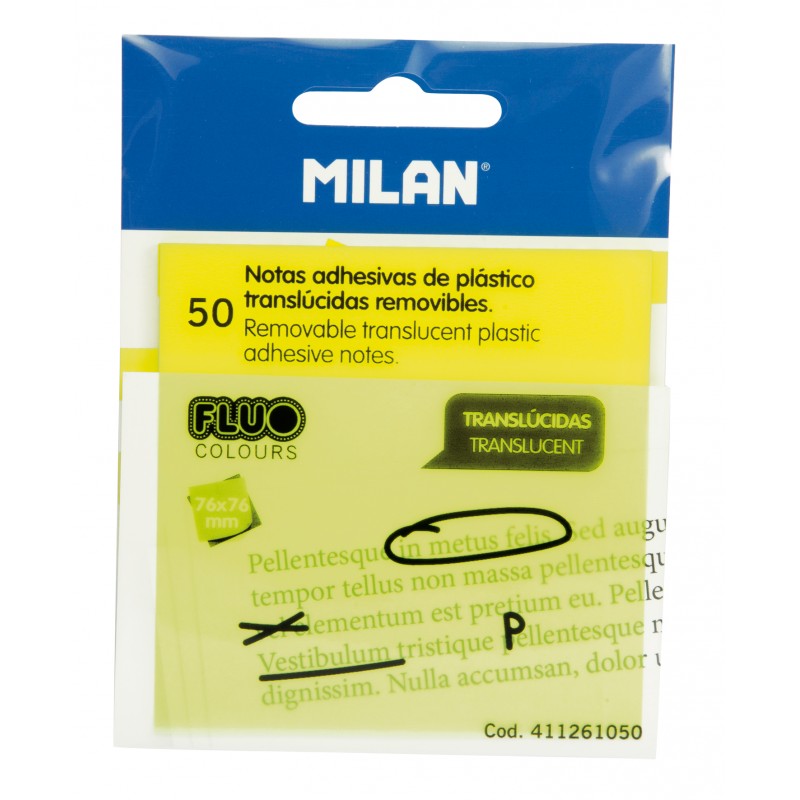 Notes autoadeziv 76mm x 76mm, 50 file/buc, plastic, galben neon, Milan 411261050