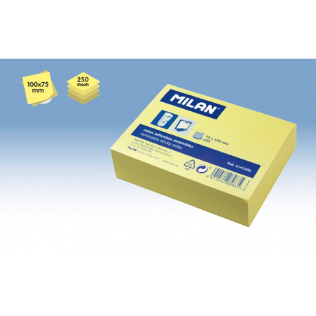 Notes autoadeziv 100mm x 75mm, 250 file/buc, galben pal, 4141250 Milan