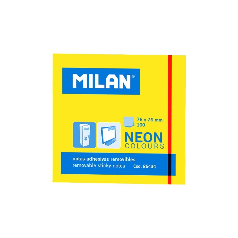 Notes autoadeziv 76mm x 76mm, 100 file/buc, galben neon, 85434 Milan