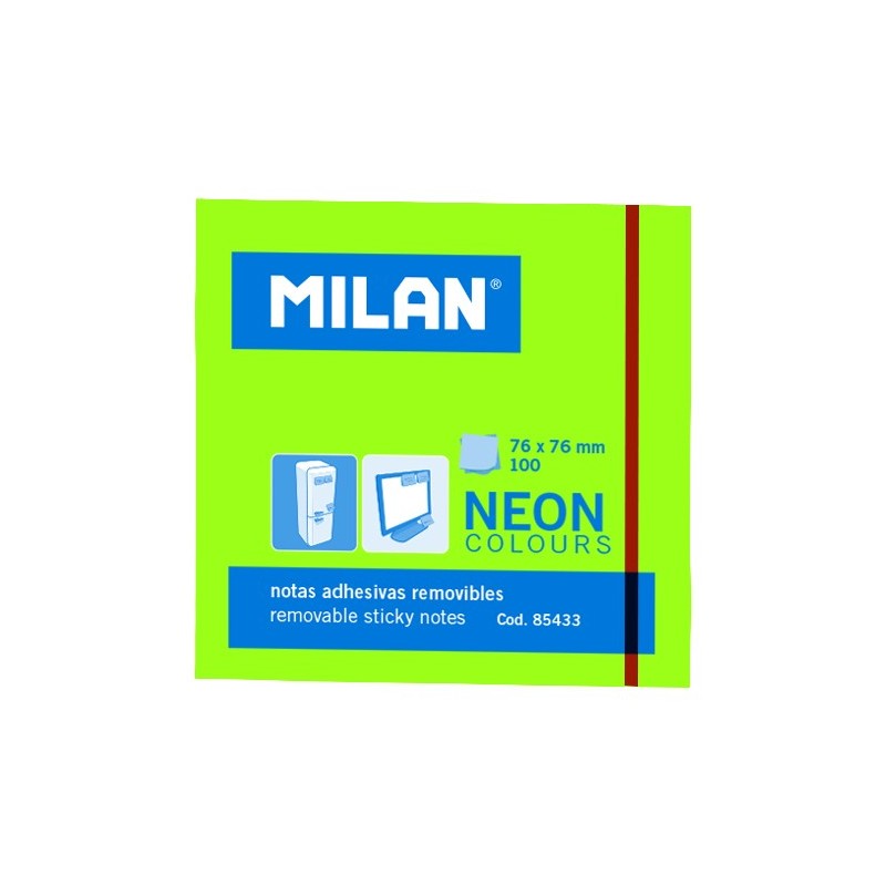 Notes autoadeziv 76mm x 76mm, 100 file/buc, verde neon, 85433 Milan