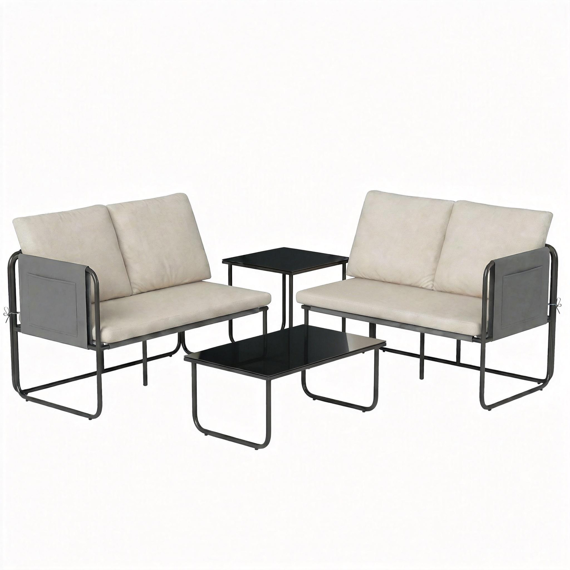 Outsunny Set mobilier de grădină pentru 4 persoane, lounge respirabil cu canapea 2 locuri, 2 fotolii, masă metalică, piciorușe de protecție | Aosom Romania