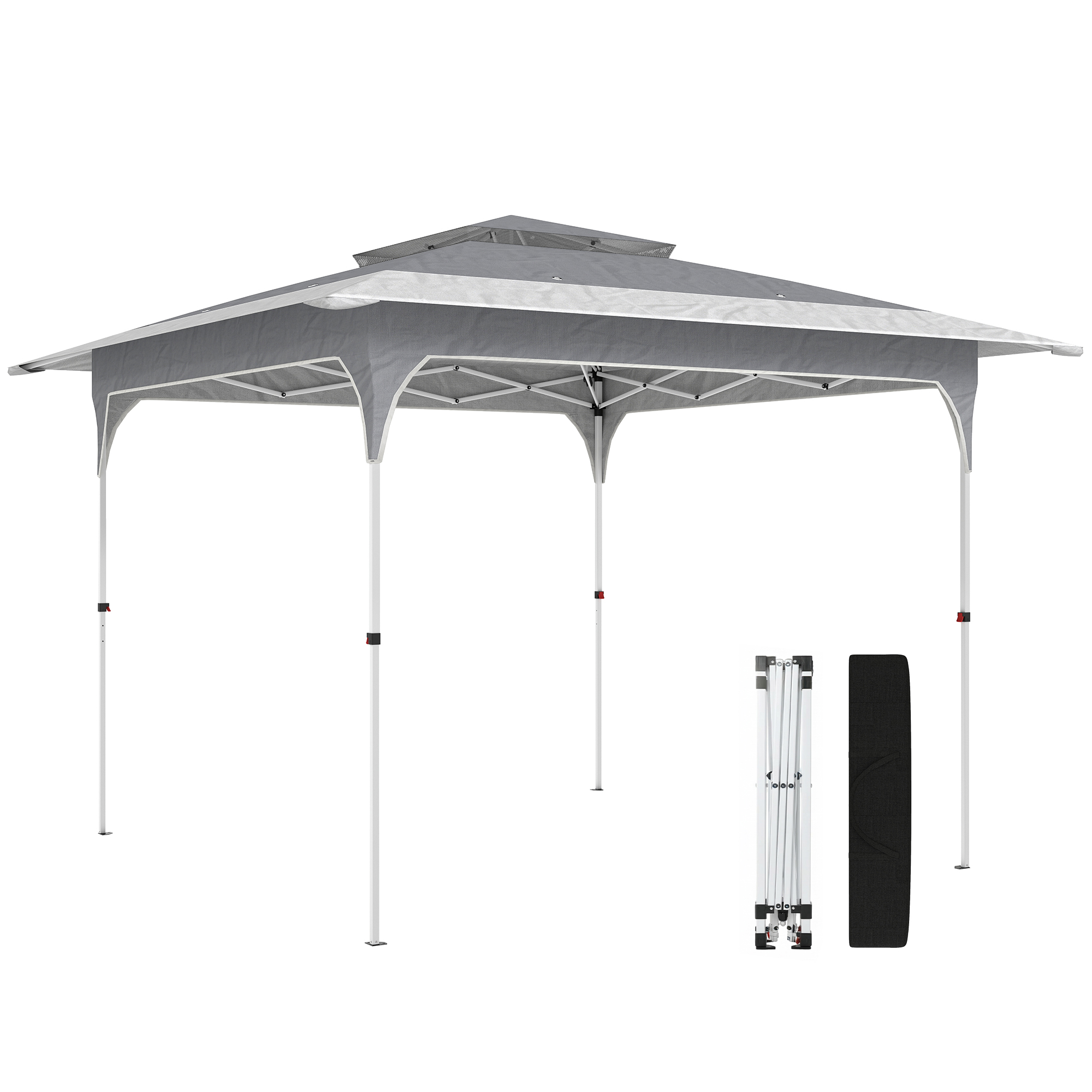 Outsunny Pavilion Pliabil 3.5x3.5 m Pop Up, Montare Ușoară cu Buton Central, Pavilion de Grădină Reglabil pe Înălțime cu Acoperiș Dublu, Geantă de Transport, UV50+, pentru Exterior, Gri Închis | Aosom Romania