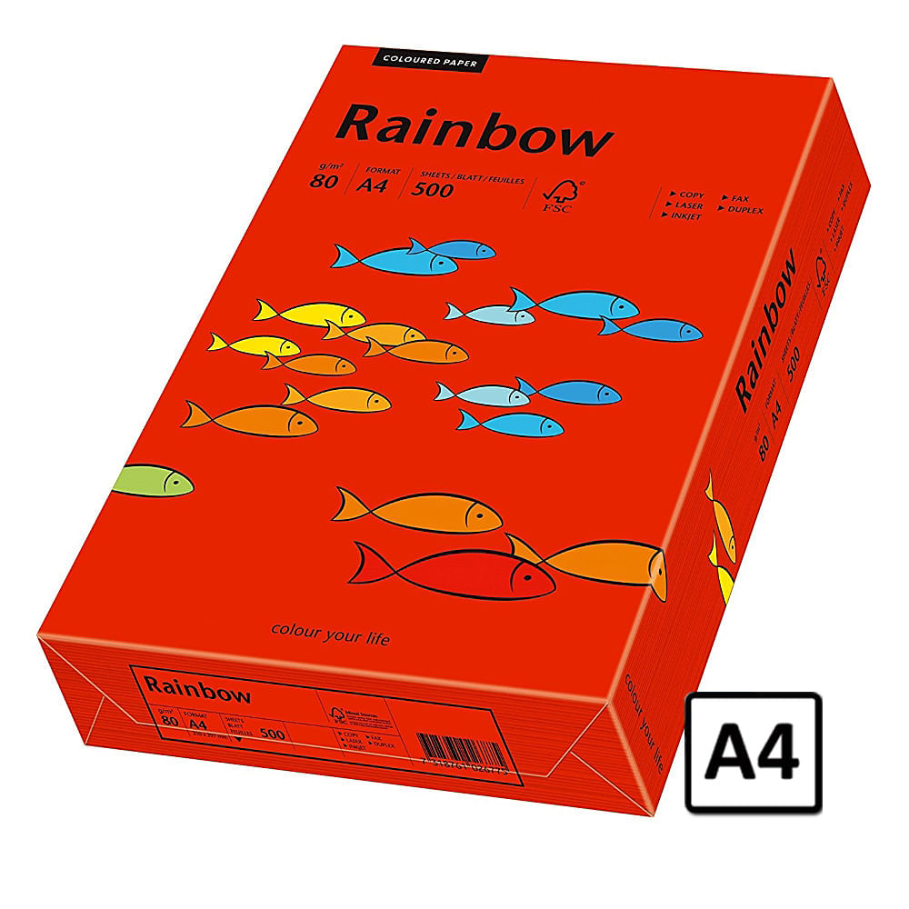 Hartie color A4 Rainbow 80 g/mp 500 coli/top rosu intens pret per top