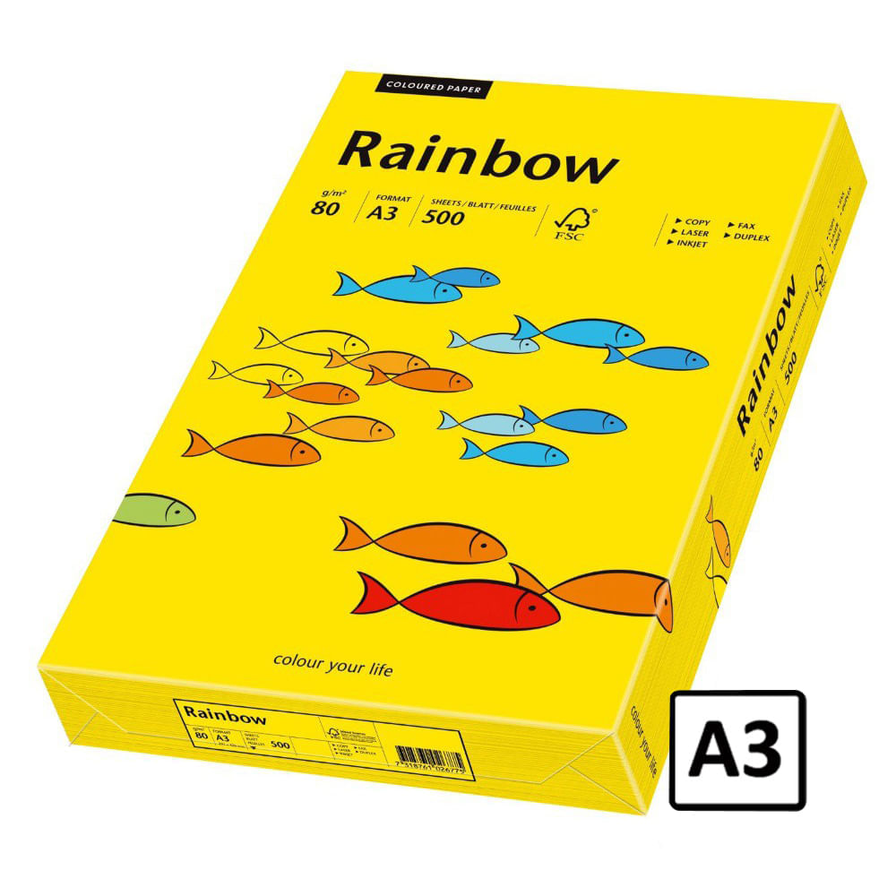 Hartie color A3 Rainbow 80 g/mp 500 coli/top galben intens pret per top