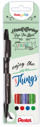 Marker pentru caligrafie, 4culori/set, culori primare, Brush Pen Touch Pentel-PESES154