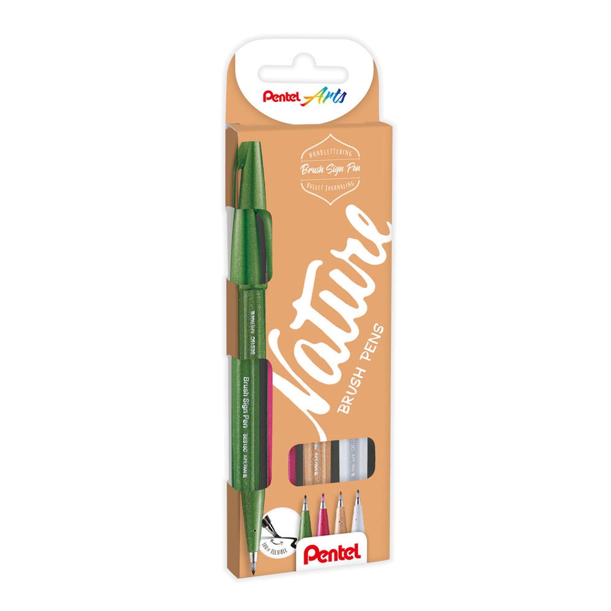 Marker pentru caligrafie, 4culori/set, culori pastel din natura, Brush Pen Touch Pentel-PESES15N4