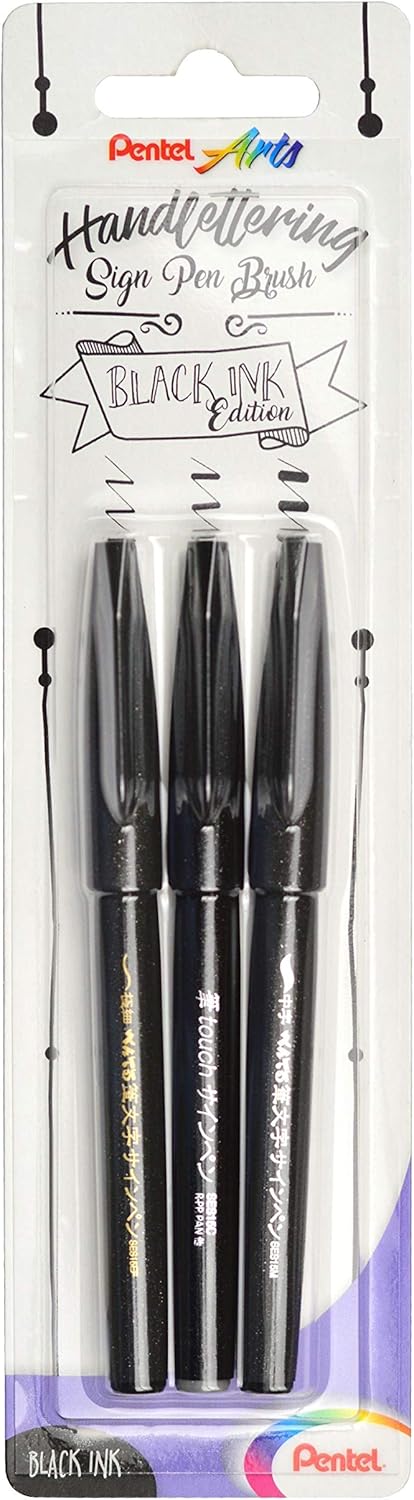 Marker pentru caligrafie, negru, 3 buc/set, Pigment Pentel-PEXSES153