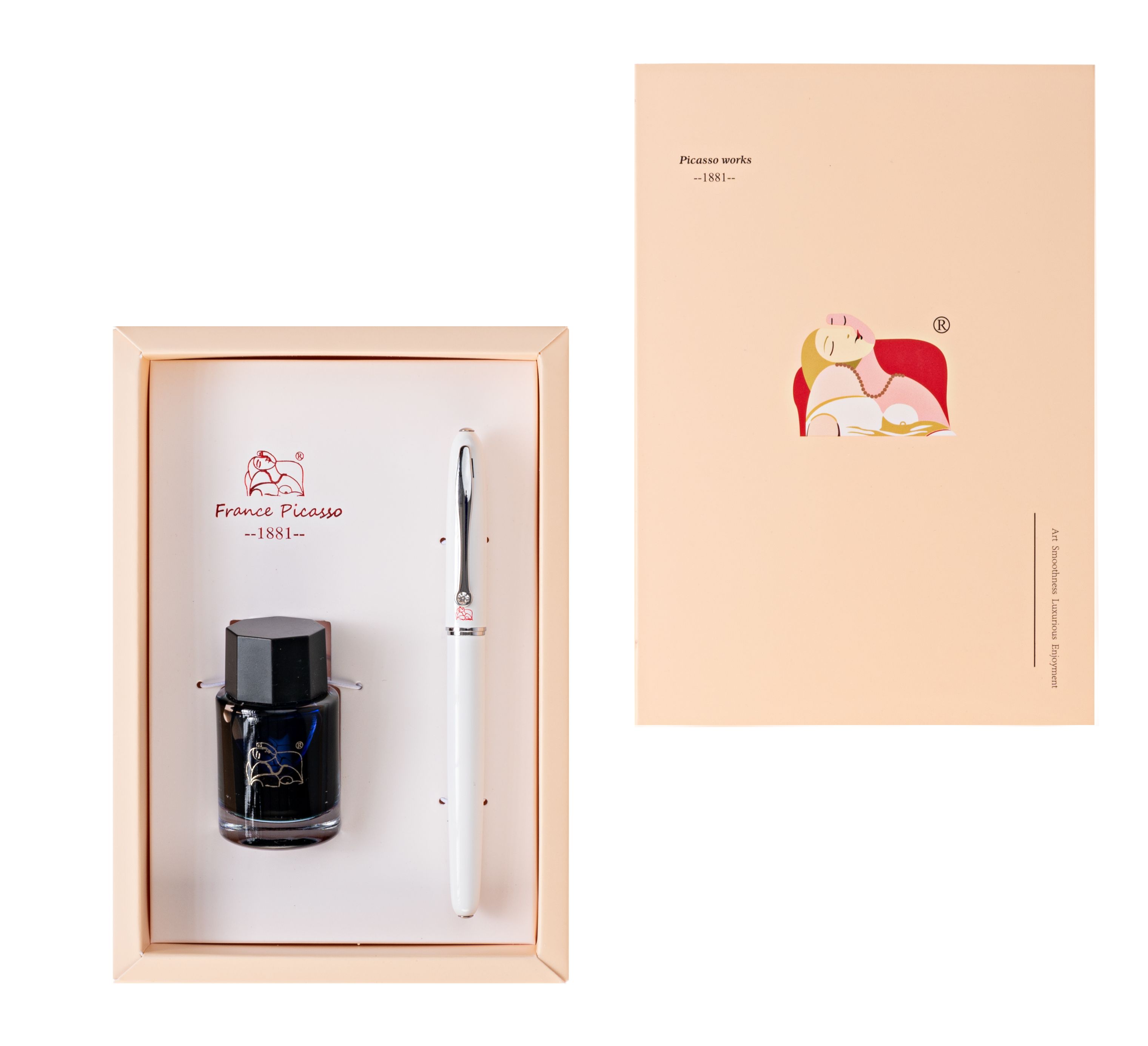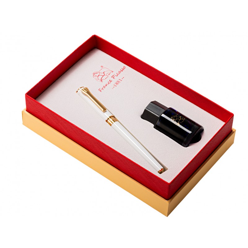 Set stilou + calimara, culoare alb/auriu, Picasso 688S/W