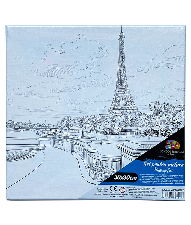 Panza pictura pe sasiu predesenata+acuarele+pensule, 30x30cm, Paris Pigna
