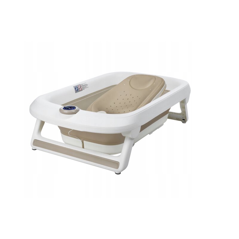 Cadita pliabila, Primabobo, Lux, Cu termometru electronic, Afisaj LCD, Suport de baie din silicon, Dop evacuare, Sarcina maxima 25 kg, 85x50x23.5, Bej