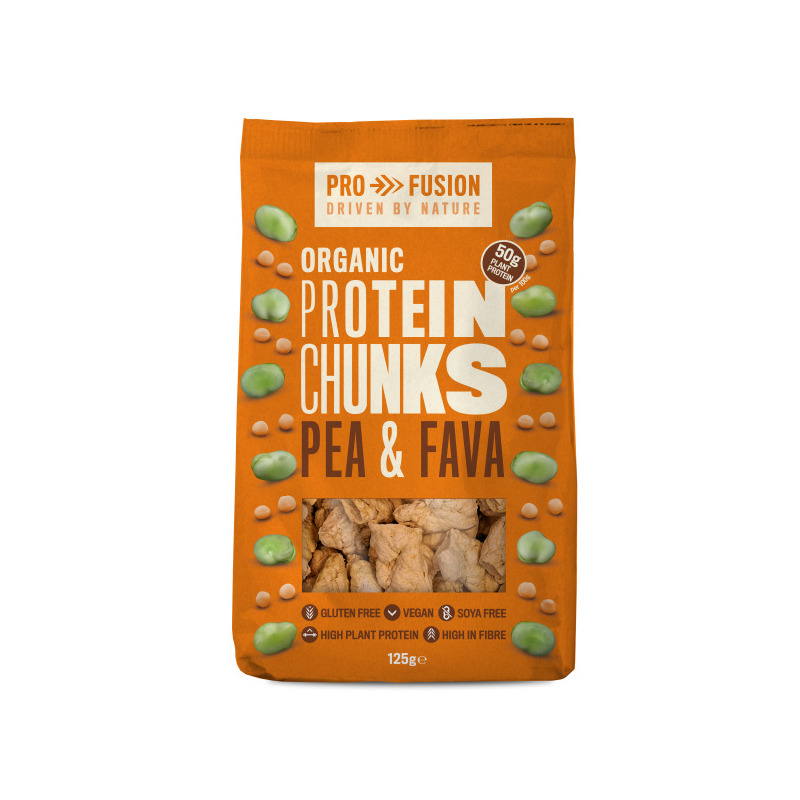 Proteina vegetala texturata din mazare si fava bucati mari, bio, 125g Profusion