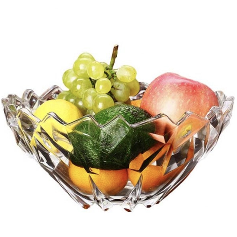 Fructiera tip bol Pufo Luxury din sticla pentru prajituri, torturi, fructe, aperitive, 24 cm
