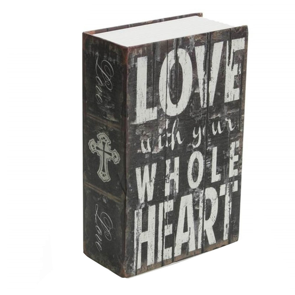 Seif secret tip carte Pufo cu cheie pentru blocare, model Love with whole Heart, 24 x 15 cm
