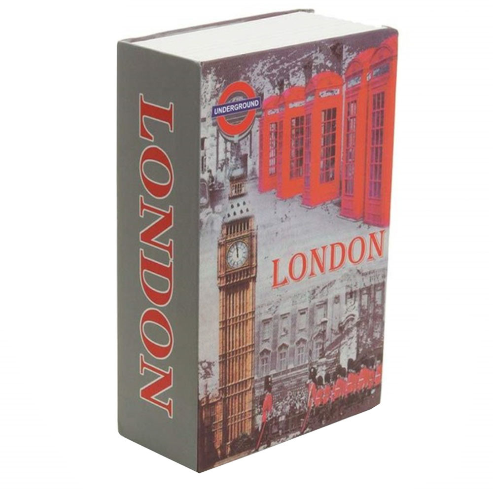 Seif secret tip carte Pufo cu cheie pentru blocare, model London Vibe, 24 x 15 cm
