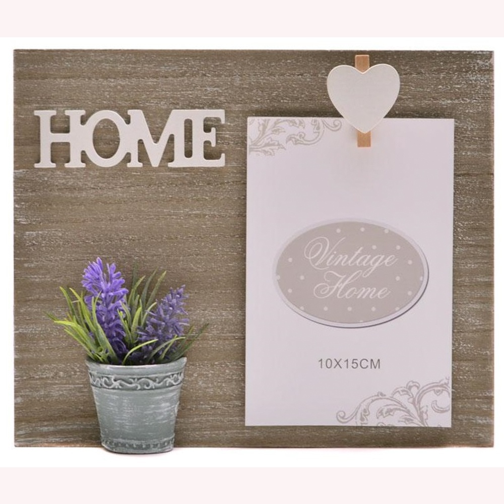 Rama foto din lemn, model cu lavanda si mesaj Home, 24 cm