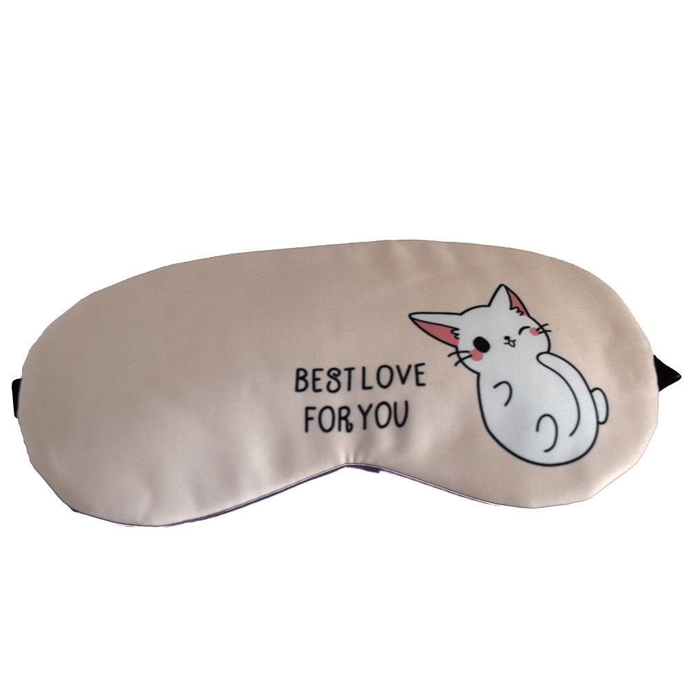 Masca pentru dormit sau calatorie, cu gel detasabil, Pufo Cat lover, 20 cm, alb