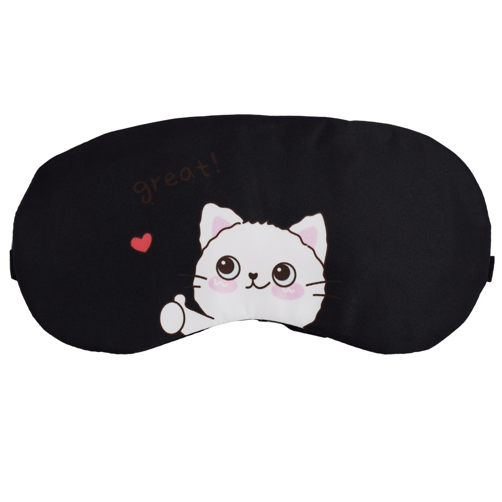 Masca pentru dormit sau calatorie, cu gel detasabil, Pufo Love Kitty, 19 cm, negru
