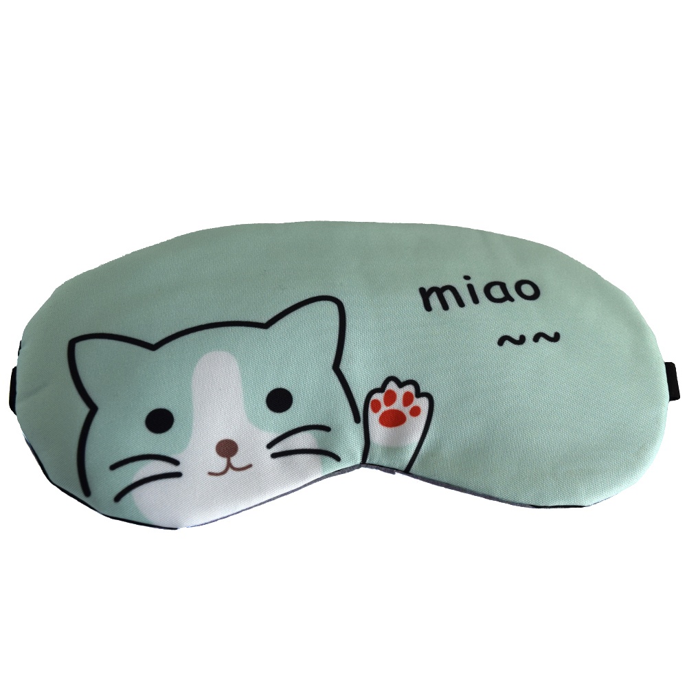 Masca pentru dormit sau calatorie, cu gel detasabil, Pufo Cat lover, 20 cm, albastru