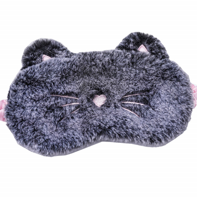 Masca pentru dormit sau calatorie, cu gel detasabil, Pufo Kitty, 20 cm, gri