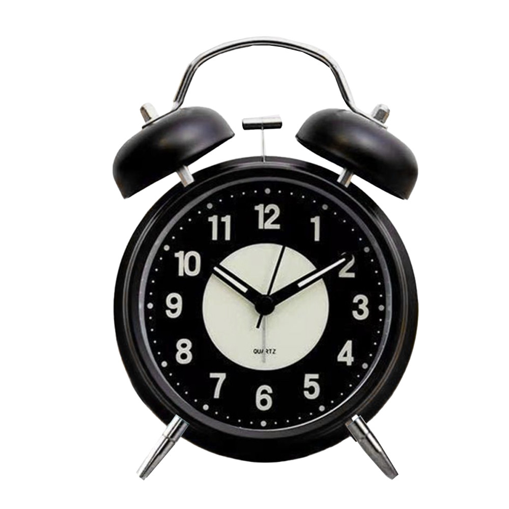 Ceas de masa desteptator Pufo Twinkle cu buton de iluminare cadran, metalic, 15 cm, negru