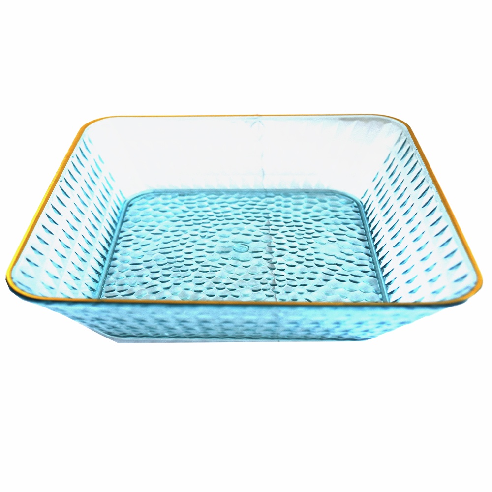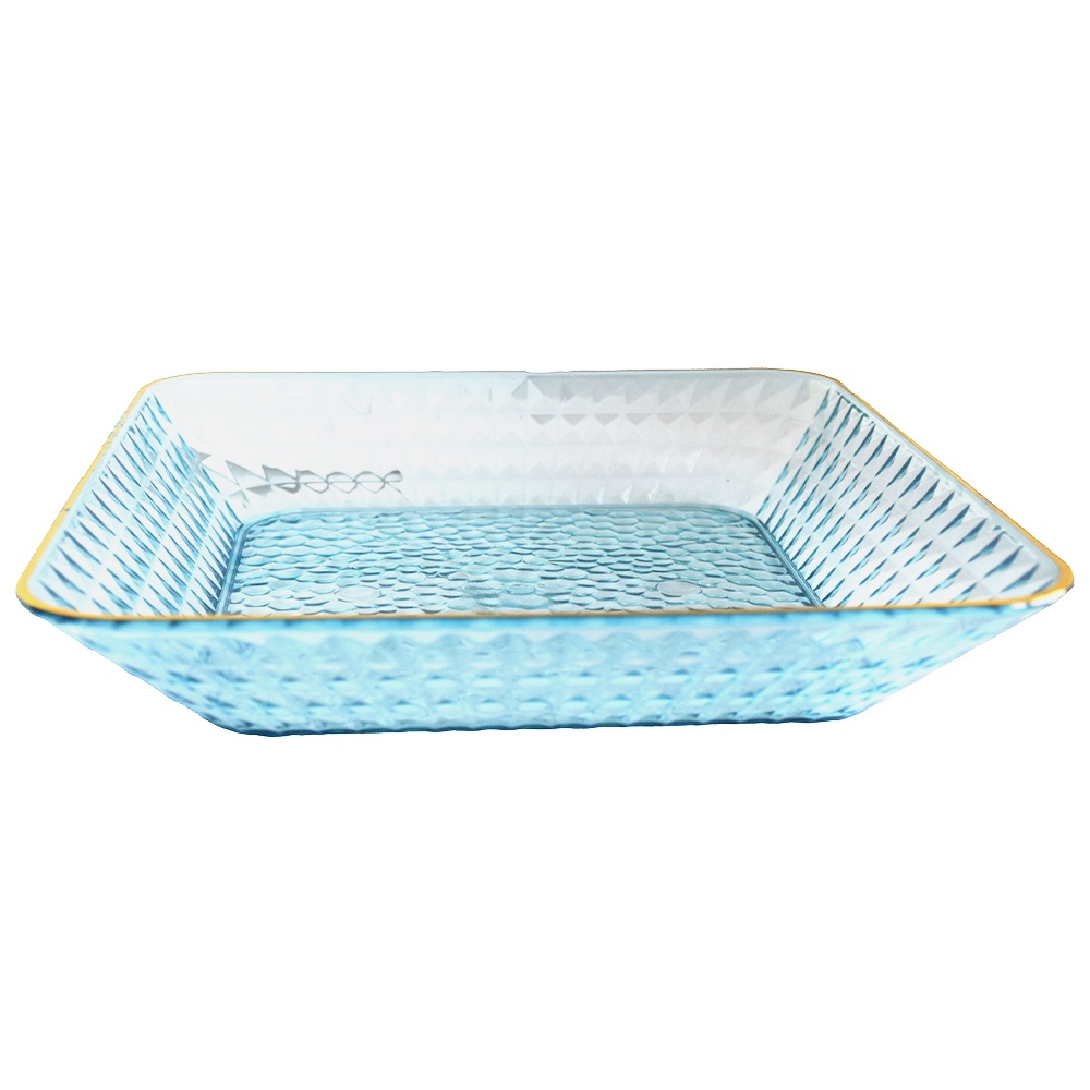 Tava decorativa eleganta Pufo Luxury pentru servire aperitive, prajituri, fructe, 17.5 cm, albastru