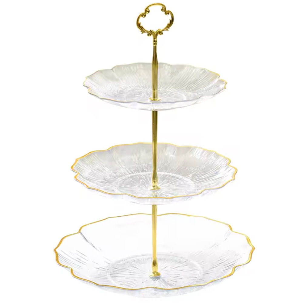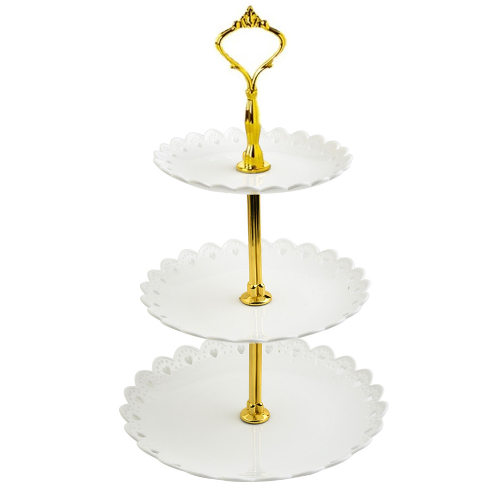 Fructiera etajata Pufo Luxury cu 3 nivele, pentru prajituri, torturi, fructe, aperitive, maner metalic