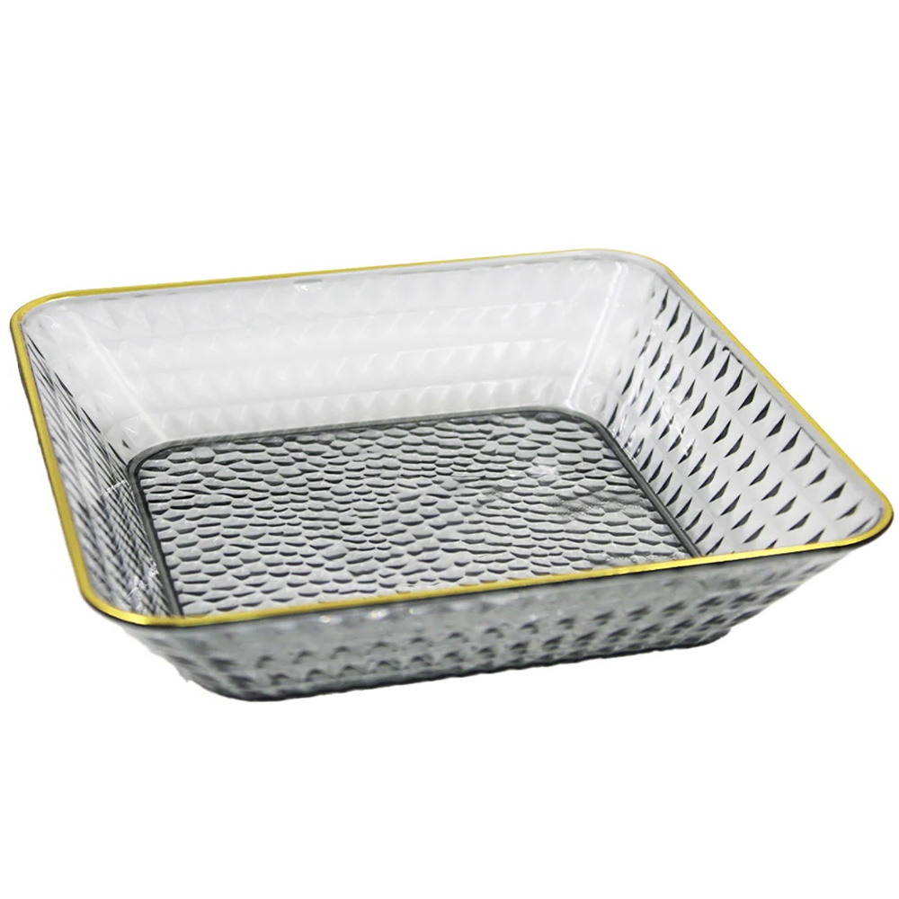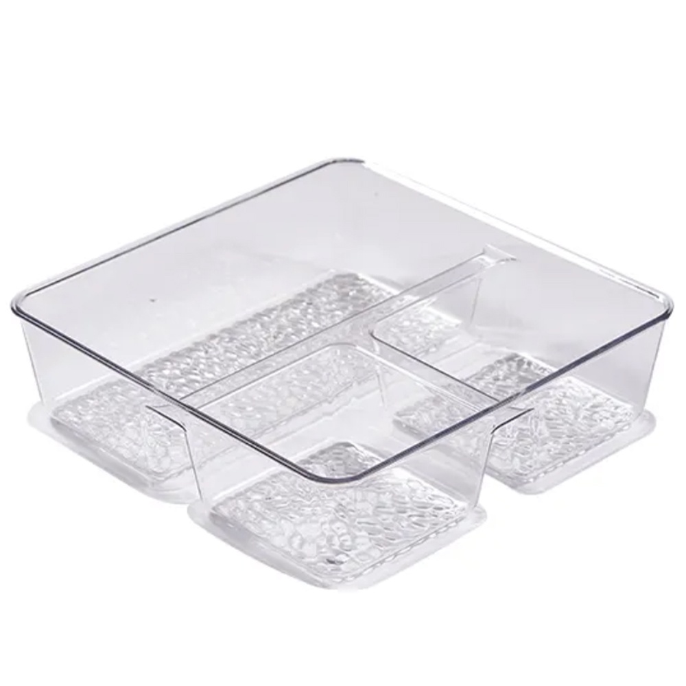 Tava Pufo cu 3 compartimente pentru servire aperitive, prajituri, fructe, gustari, 20 x 20 cm, transparent