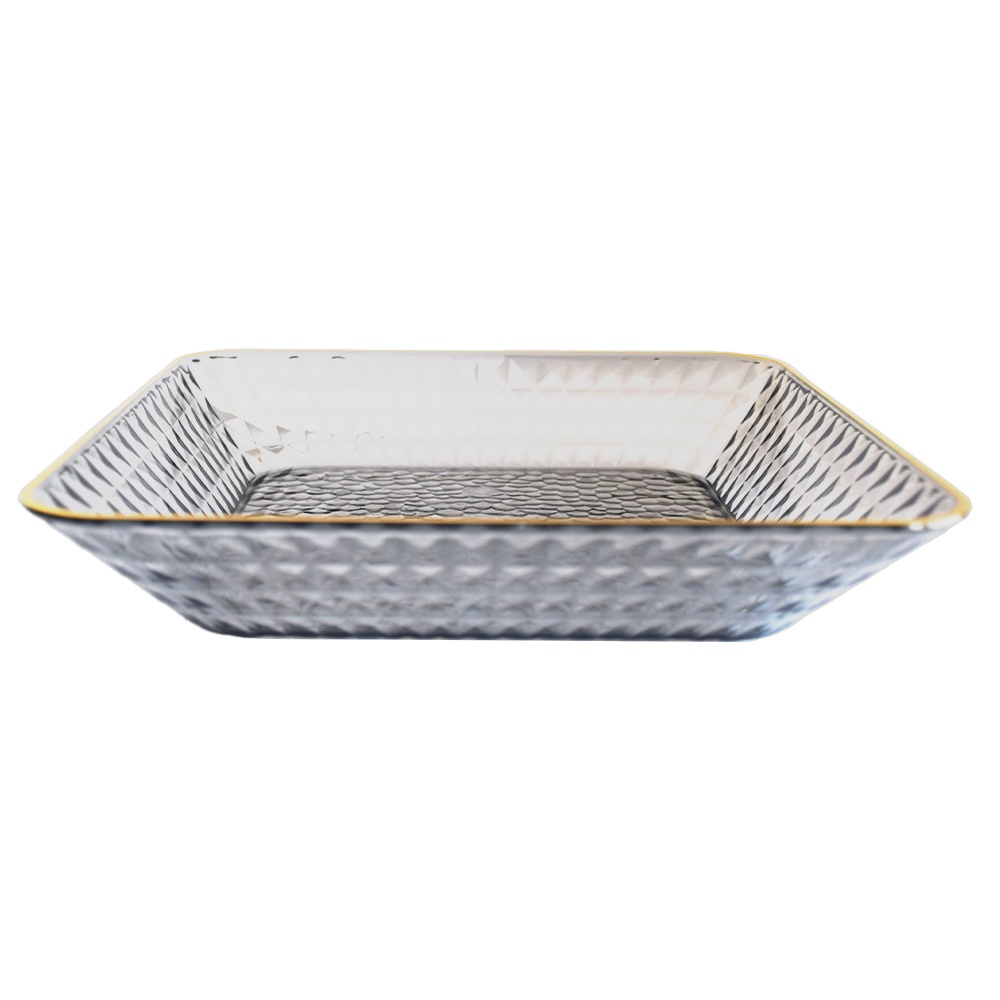 Tava decorativa eleganta Pufo Luxury pentru servire aperitive, prajituri, fructe, 17.5 cm, fumuriu