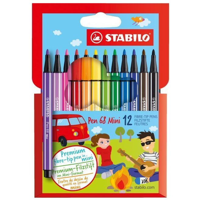 Carioca 12 culori/set, varf 1mm, Mini Pen 68 Stabilo SW66812