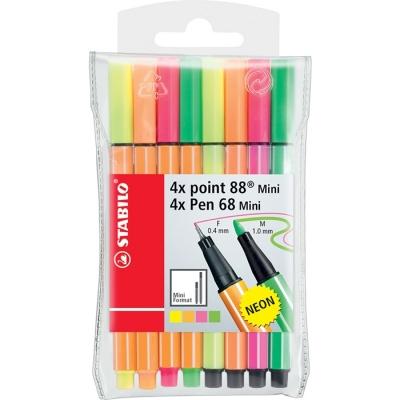 Carioca 8 culori/set, varf 1mm, neon, Mini Pen 68/Point 88 Stabilo SW68868081