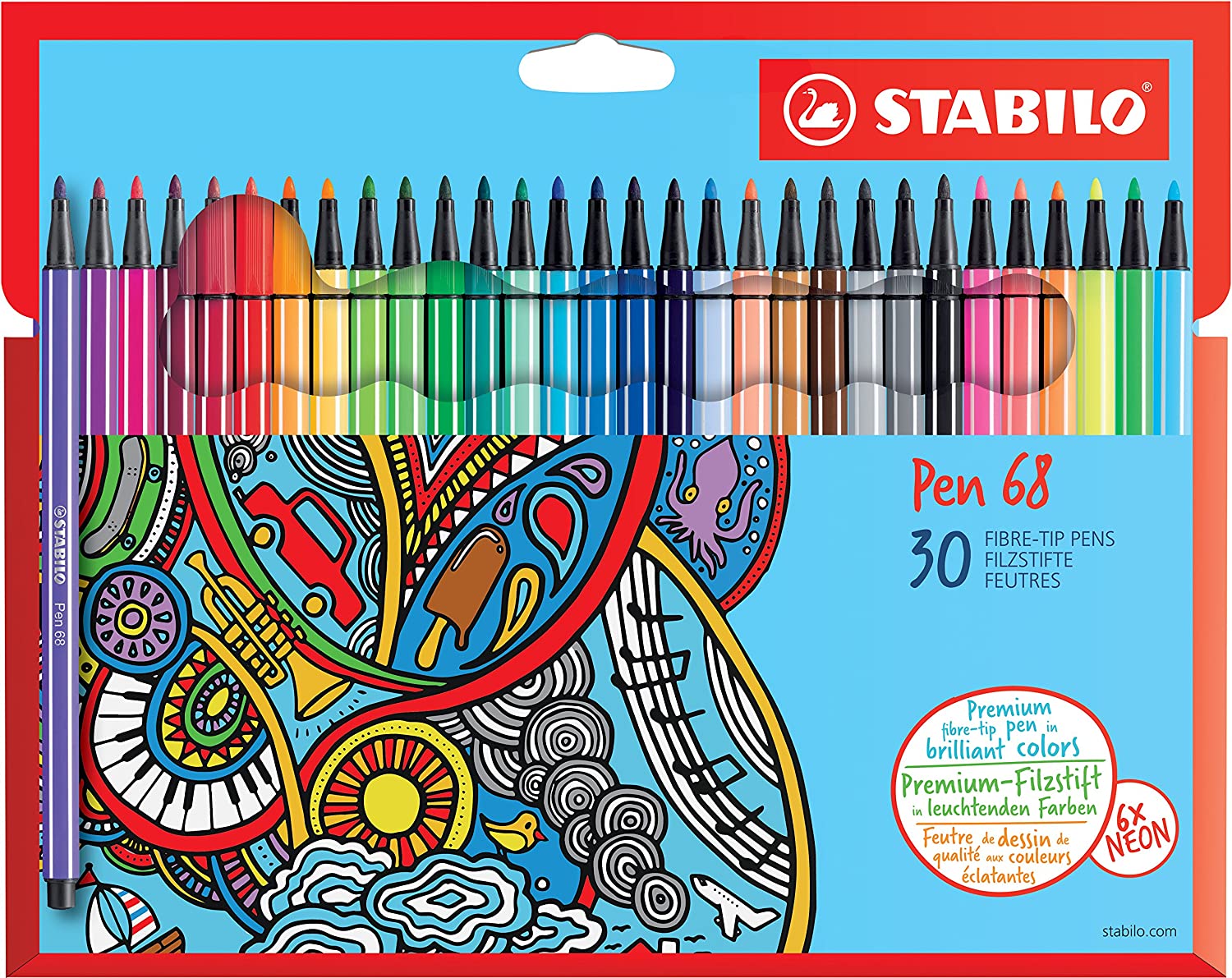 Carioca 30 culori/set, varf 1mm, Pen 68 Stabilo SW68307