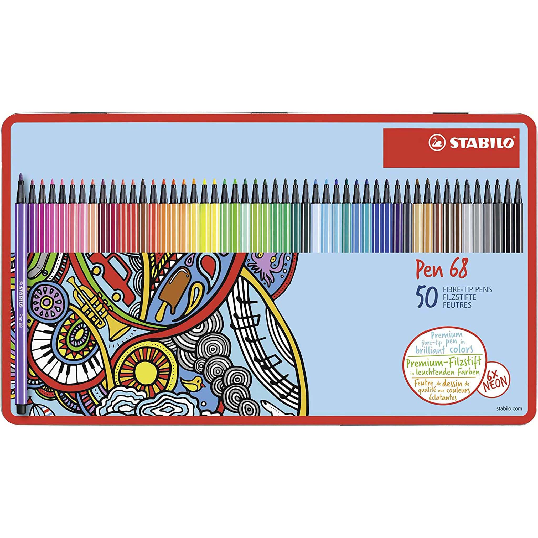 Carioca 50 culori/set, varf 1mm, cutie metal, Pen 68 Stabilo SW68506