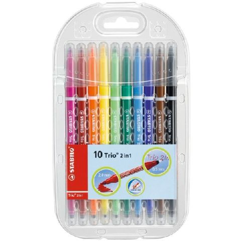 Carioca 2 varfuri, 10 culori/set, Trio 2 in 1 Stabilo SW22310