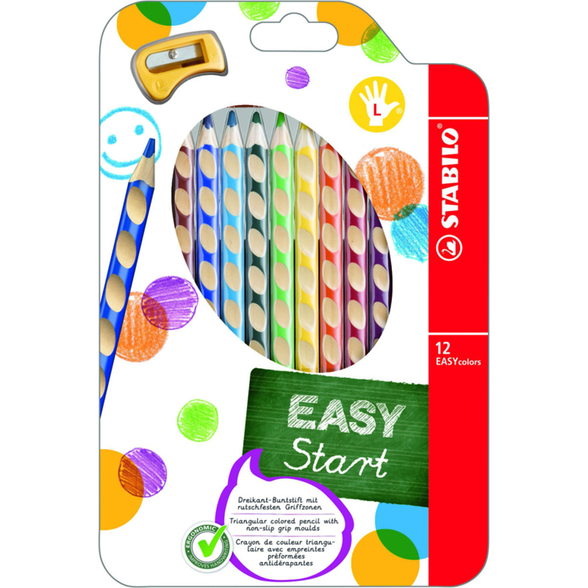 Creioane colorate 12culori/set, pentru stangaci, EasyColors Stabilo SW33112