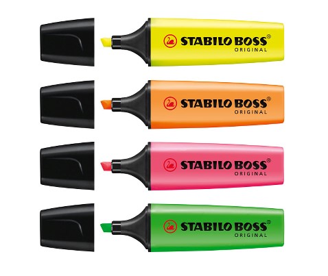 Textmarker 4 culori/set (galben, portocaliu, verde, roz), Boss Original Stabilo