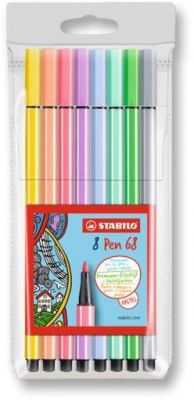 Carioca 8 culori/set, varf 1mm, culori pastel, Pen 68 Stabilo, SW68801