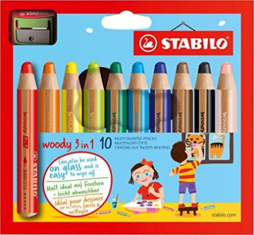 Creioane colorate 10culori/set si o ascutitoare, Woody 3 in 1 Stabilo