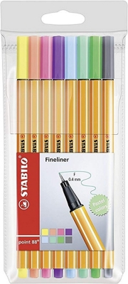 Liner 8 culori/set, varf 0,4mm, culori pastel, Point 88 Stabilo SW88801