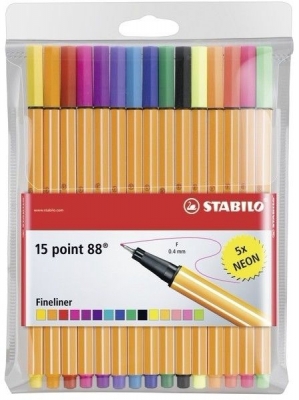 Liner 10 + 5 culori neon/set, varf 0,4mm, Point 88 Stabilo SW88151-88/15-1