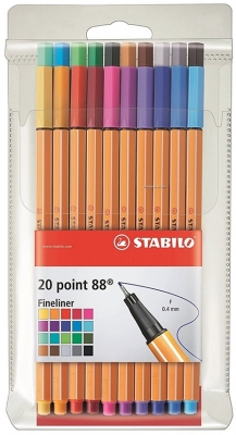 Liner 20 culori/set, varf 0,4mm, Point 88 Stabilo SW8820-8820