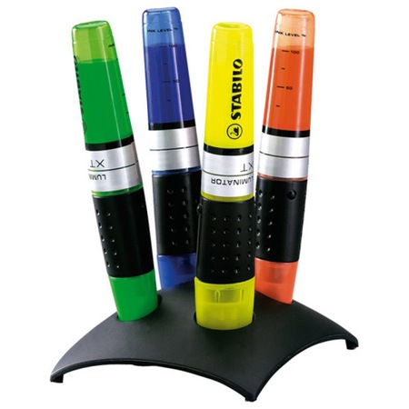 Textmarker 4 culori/set (galben, portocaliu, verde, albastru) + suport, Luminator Stabilo