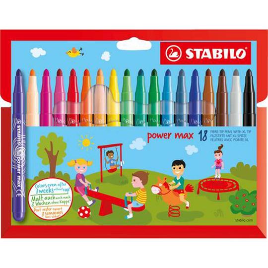 Carioca 18 culori/set, varf 3mm, Power Maxx Stabilo