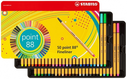 Liner 50 culori/set, varf 0,4mm, cutie metal, Point 88 Stabilo SW88506